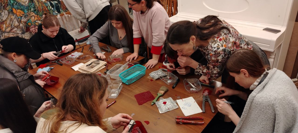 В рамках профориентационной работы 11.12.2025 года обучающиеся профессии 54.01.01 — группа №304 под руководством мастера п/о Беляевой Е.Н, приняла участие в экскурсии в Музей мозаики Владимира Лубенко. Экскурсию организовал Центр занятости Кировского района. Сотрудники Мозаичного дворика провели экскурсию по всем помещениям мастерских и показали ребятам все этапы изготовления изделий. Так же были рассмотрены вопросы прохождения стажировок, практик на базе организации и возможность дальнейшего трудоустройства.