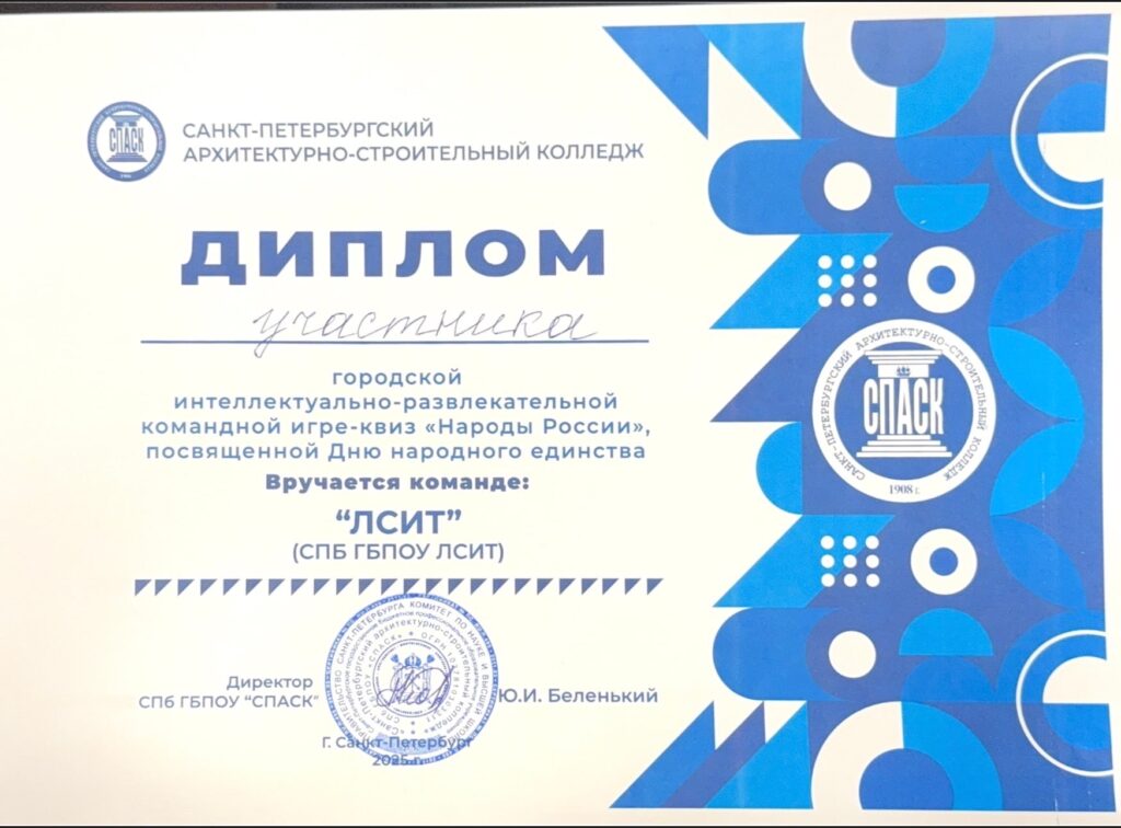 6 ноября 2025 года в Санкт-Петербургском архитектурно-строительном колледже прошла увлекательная интеллектуально-развлекательная командная игра-квиз «Народы России», посвященная Дню народного единства.