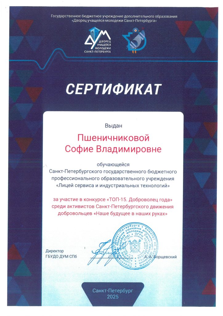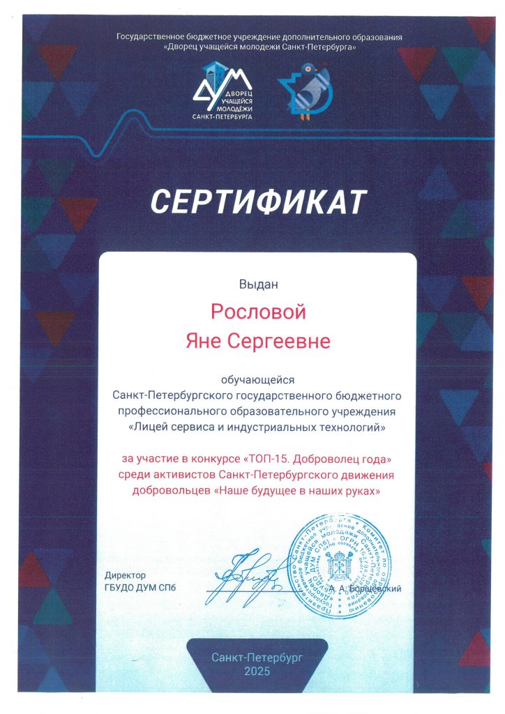 Наши обучающиеся с сентября по декабрь 2025 активно участвовали в городском конкурсе ТОП-15 доброволец года, который был организован Дворцом учащейся молодежи.