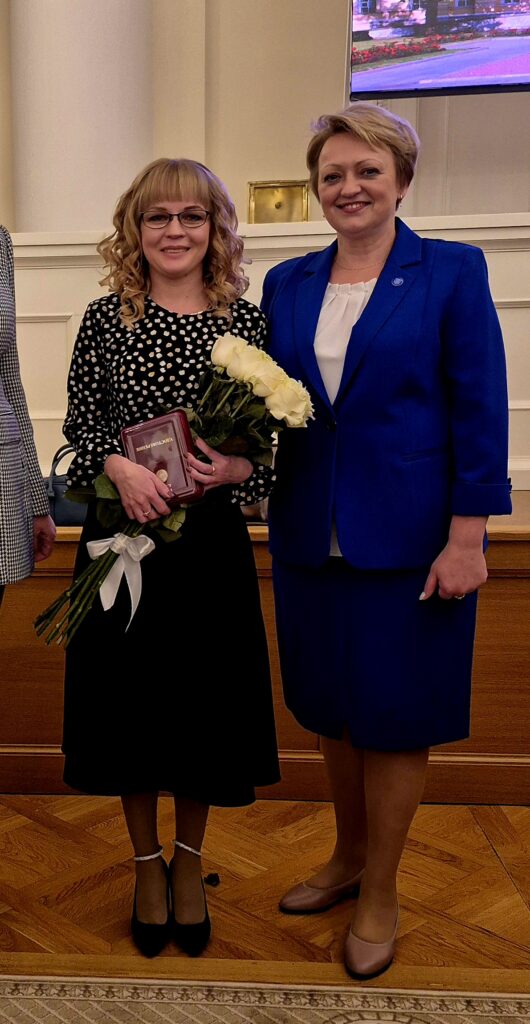 12 ноября в Смольном с участием вице-губернатора Санкт-Петербурга И. П. Потехиной состоялась церемония награждения педагогических работников почетным нагрудным знаком «За гуманизацию школы Санкт-Петербурга». Это награда Правительства региона, которую присуждают за развитие системы образования, духовное и нравственное воспитание подрастающего поколения. Мы очень гордимся, что наш мастер производственного обучения – Травина Татьяна Владимировна – стала одной из награжденных. Поздравляем и желаем дальнейших успехов!