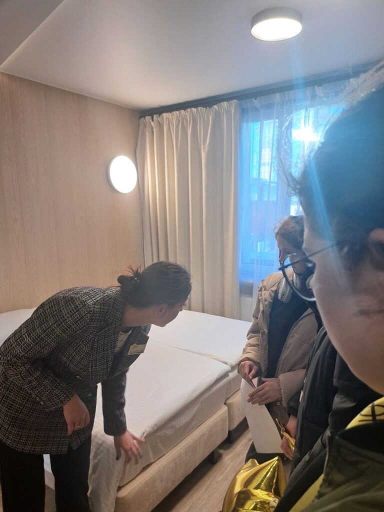 30.09.2025 наши обучающиеся из 14 группы по профессии «Горничная» побывали в гостях у отеля «Свет». Старший супервайзер Марина Сергеевна устроила для них настоящее профориентационное путешествие — рассказала о работе отеля, раскрыла тонкости профессии и ответила на все вопросы.