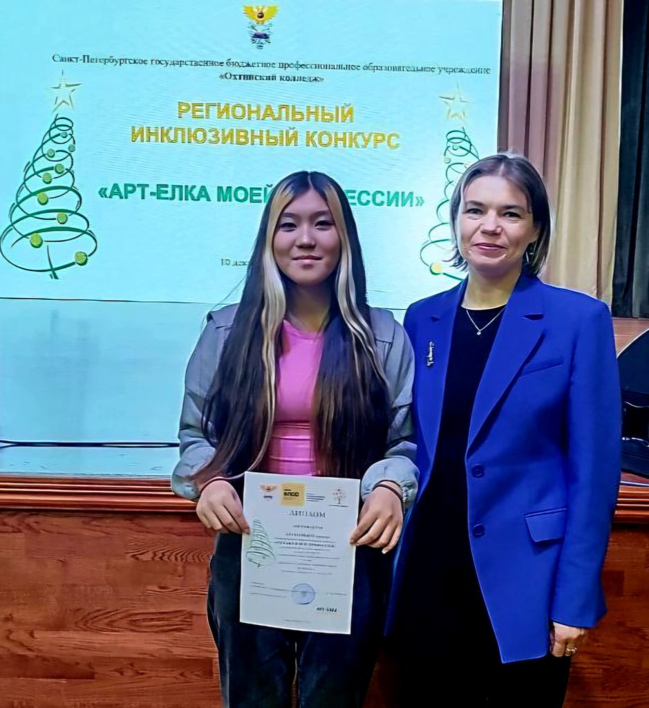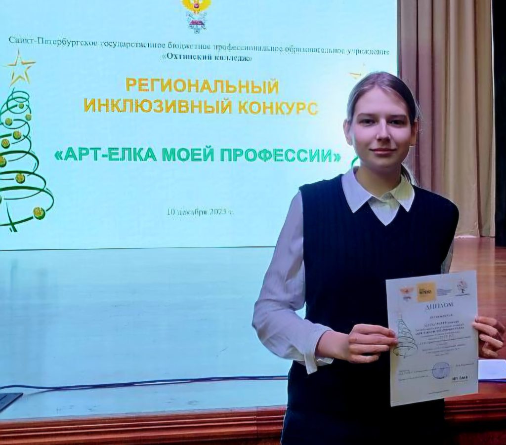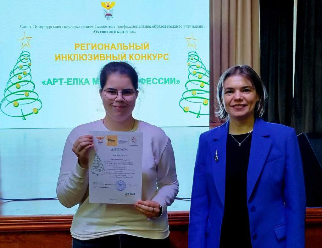 10 декабря в СПб ГБПОУ «Охтинский колледж» состоялось открытие выставки «АРТ-елка моей профессии», а также церемония награждения победителей и призеров. В торжественном открытии выставки приняли участие заведующий коррекционным отделением Пастушенко О.А. и обучающаяся группы №25 Амелина Кира.