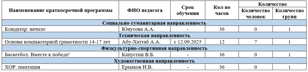 Сведения о контингенте обучающихся ОДО  на 01.10.2025