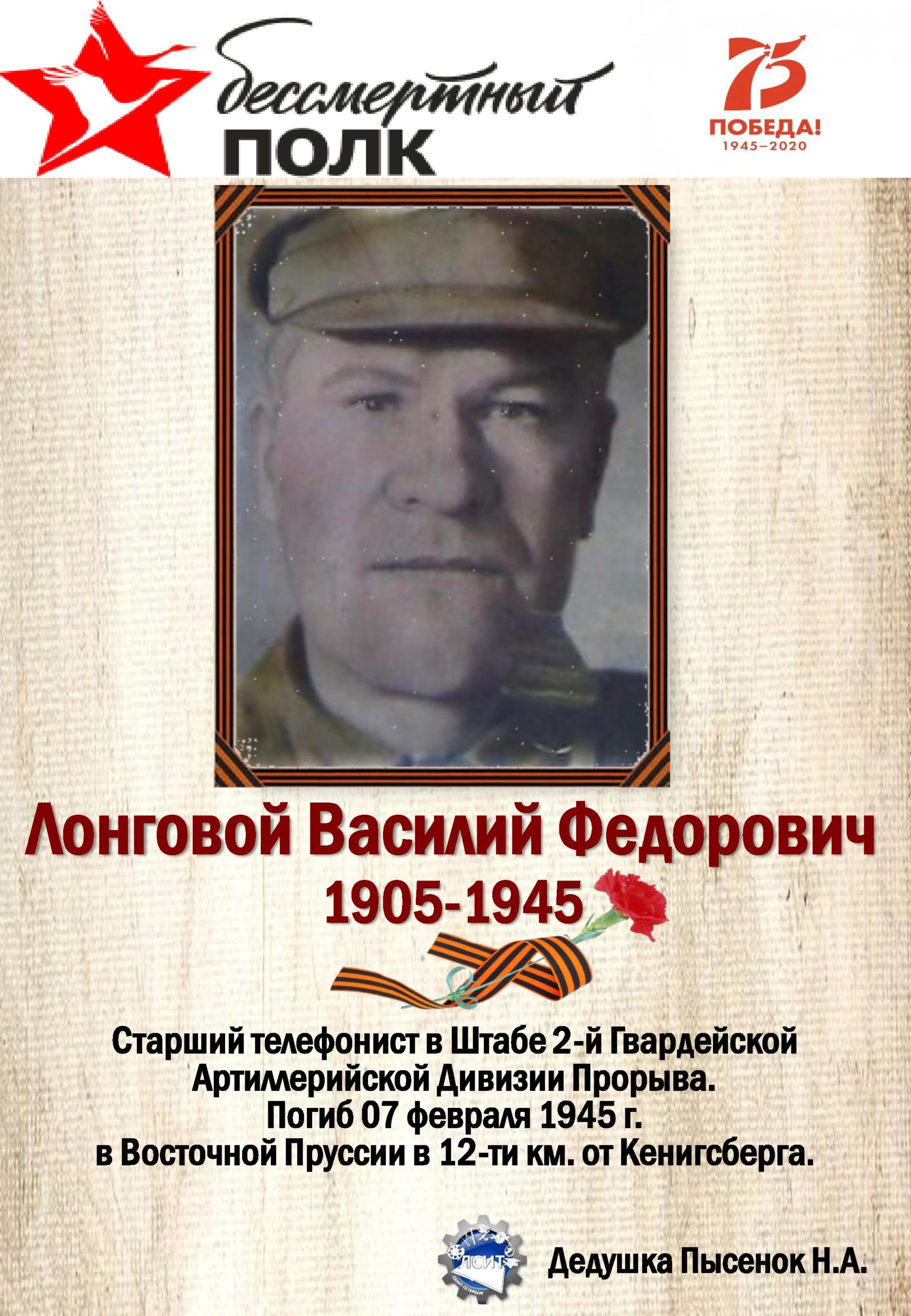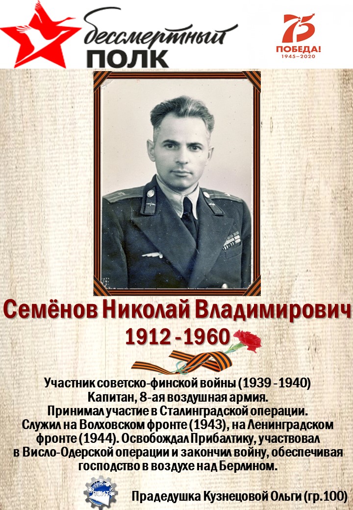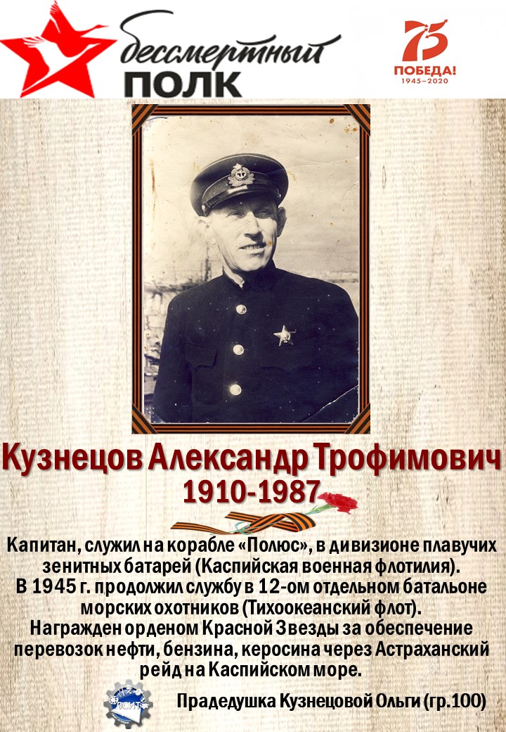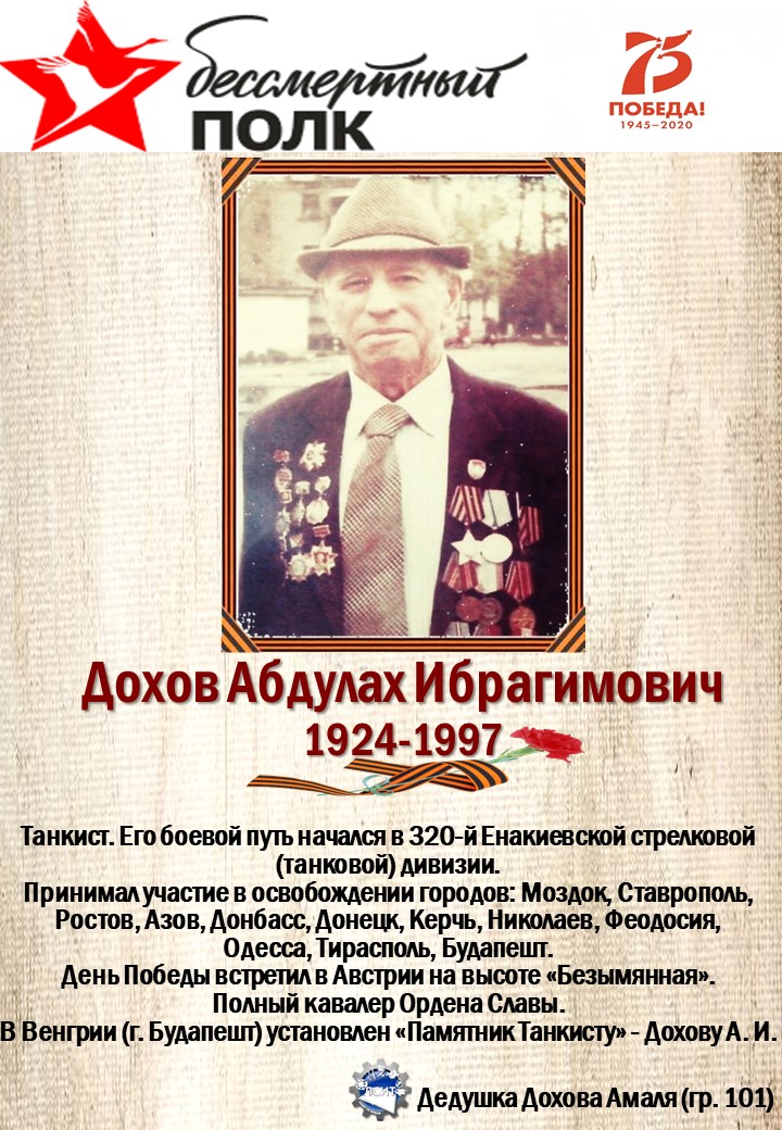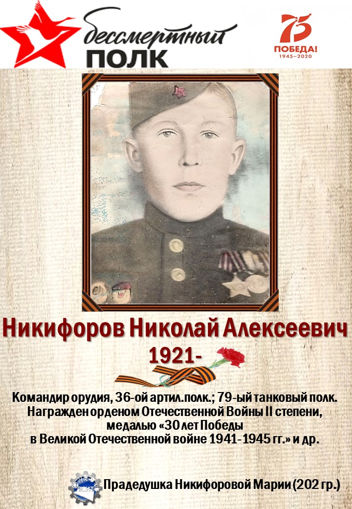 75 лет со дня Великой Победы мы вспоминаем с глубоким уважением и почтением к своим предкам, воевавшим за нашу Родину!