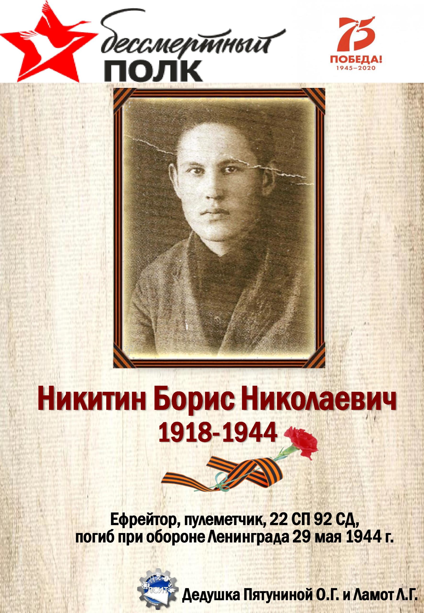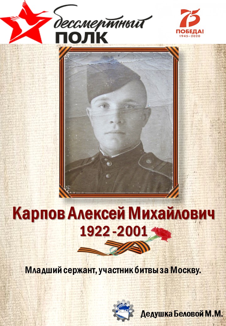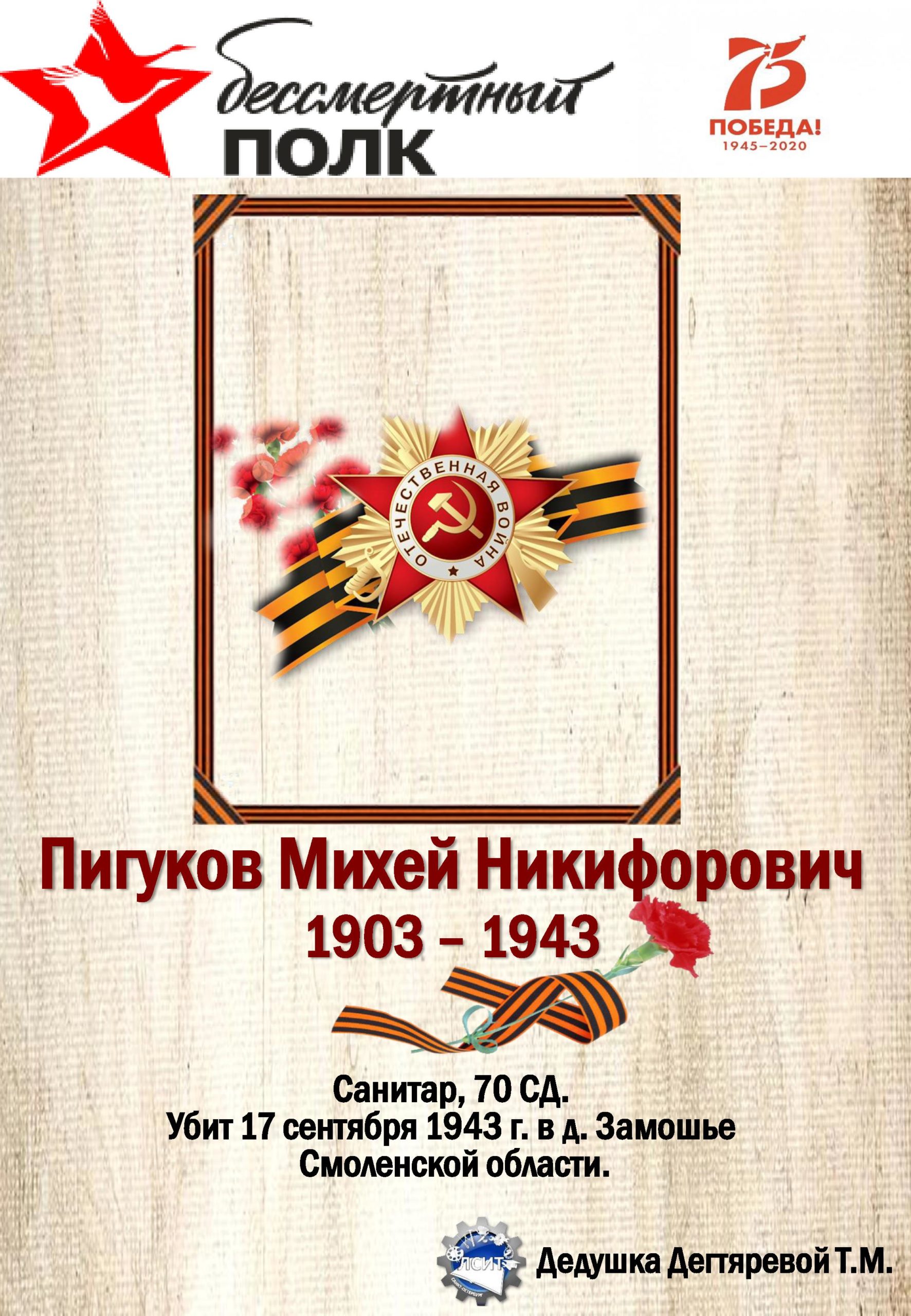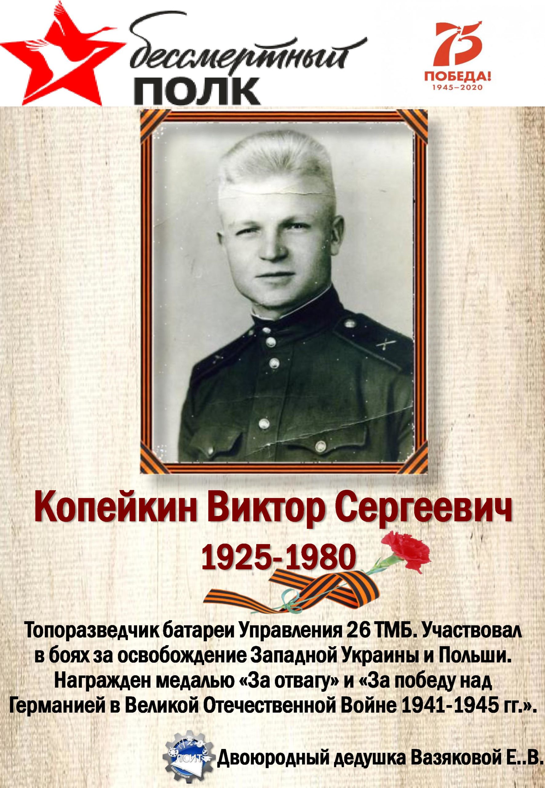 75 лет со дня Великой Победы мы вспоминаем с глубоким уважением и почтением к своим предкам, воевавшим за нашу Родину!