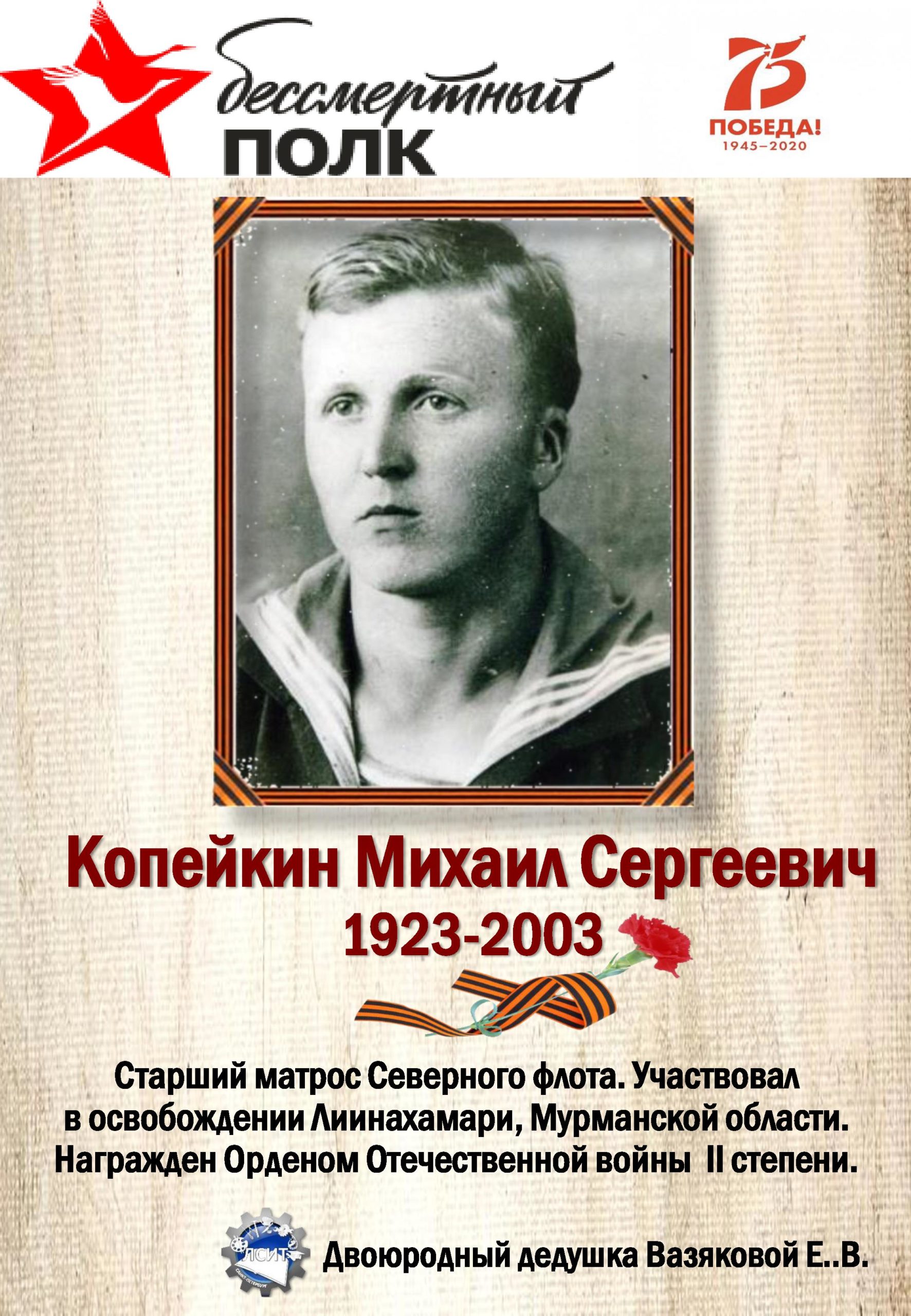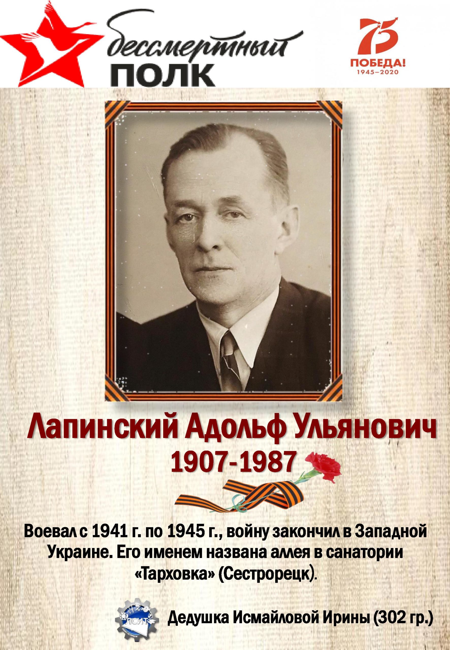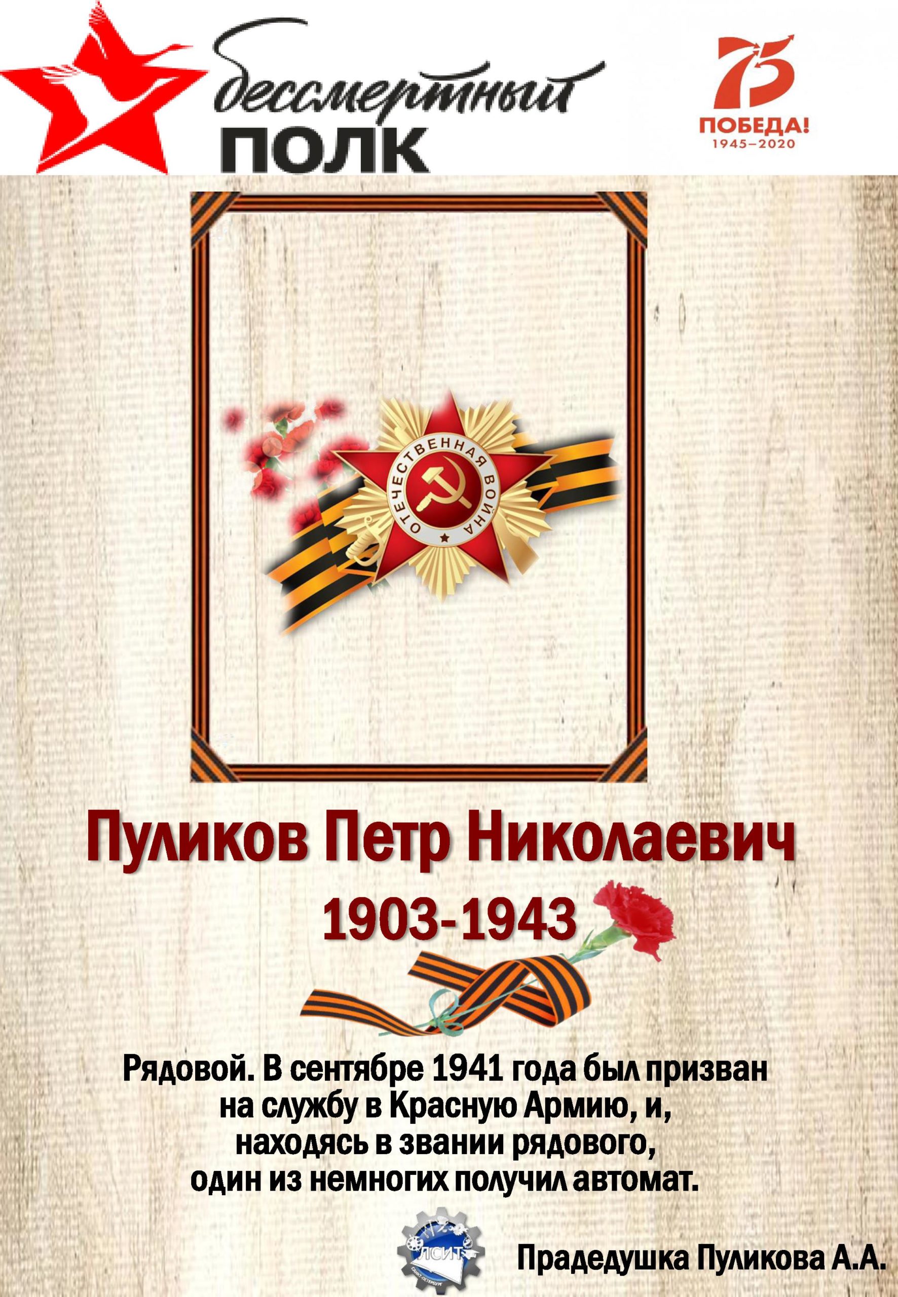 С 75-летием Победы в Великой Отечественной войне 1941-1945гг., на сайте ЛСИТ стартовала виртуальная акция «Бессмертный полк».